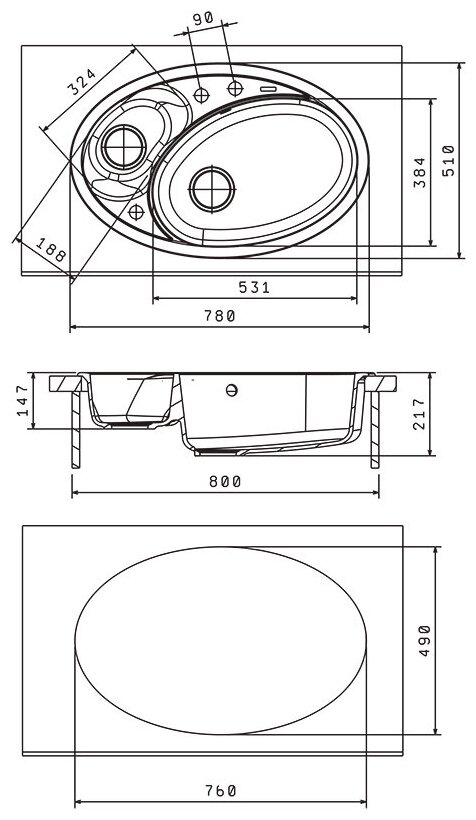 дополнительная чаша, корзинчатый вентиль, отверстие под смеситель, сливная арматура