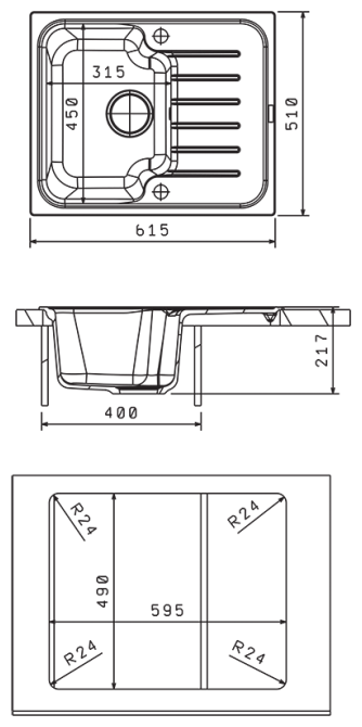 Размер монтажного отверстия под мойку (ШхГ)