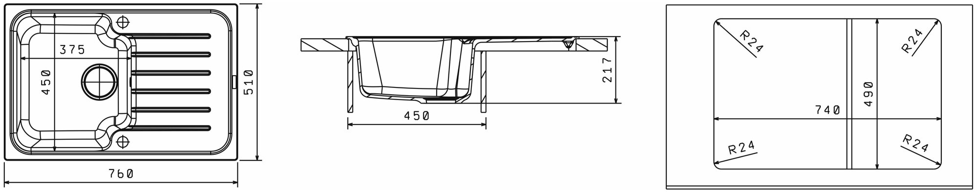 Размер монтажного отверстия под мойку (ШхГ)