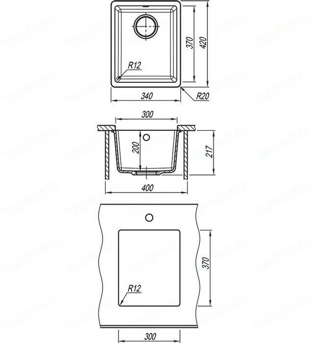 корзинчатый вентиль, отверстие под смеситель, сливная арматура, Отводная арматура с выпуском 3 ? ” (D=90 мм) и переливом, документация