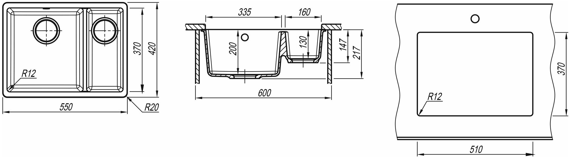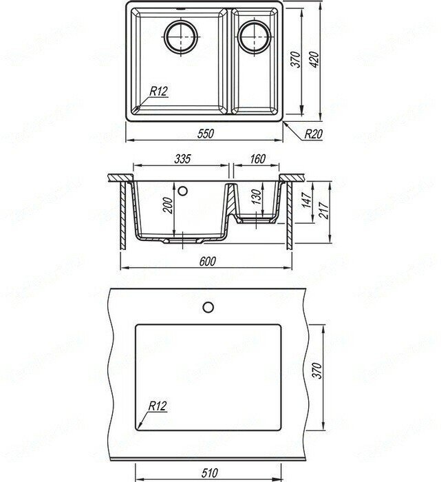дополнительная чаша, С сифоном, корзинчатый вентиль, отверстие под смеситель, сливная арматура