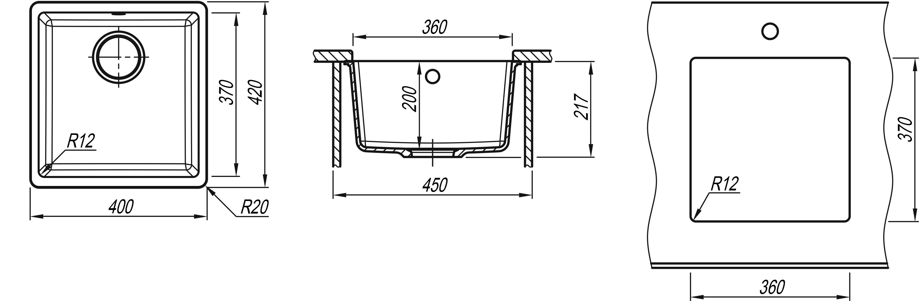 монтаж под столешницу, материал: Florensil, прочный кварцевый компози