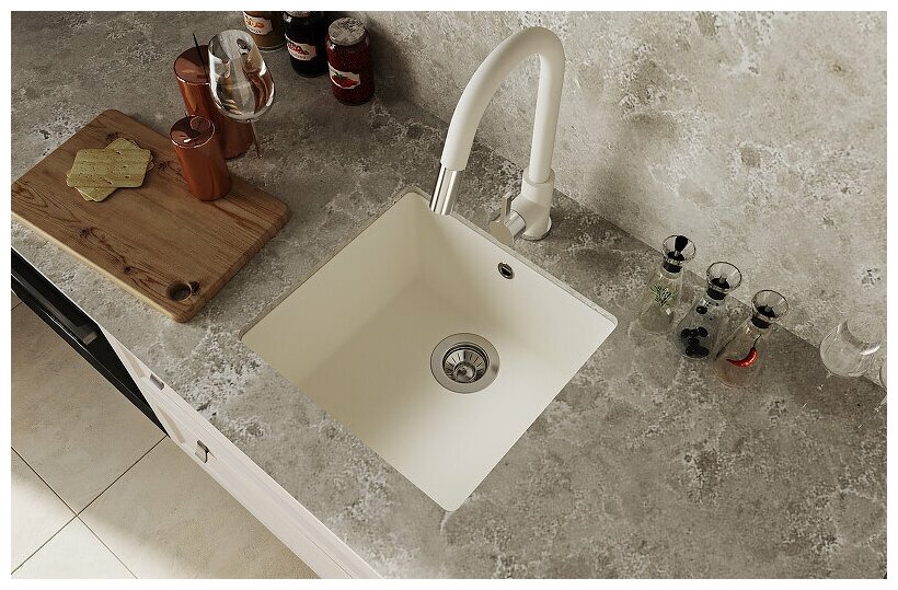 Удобно встала для встроенной мойки. Приятная поверхность