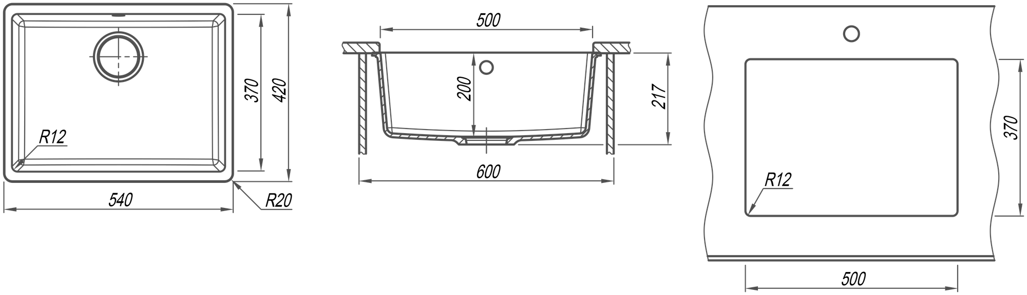 врезная, Под столешницу