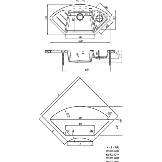 дополнительная чаша, угловая, отверстие под смеситель