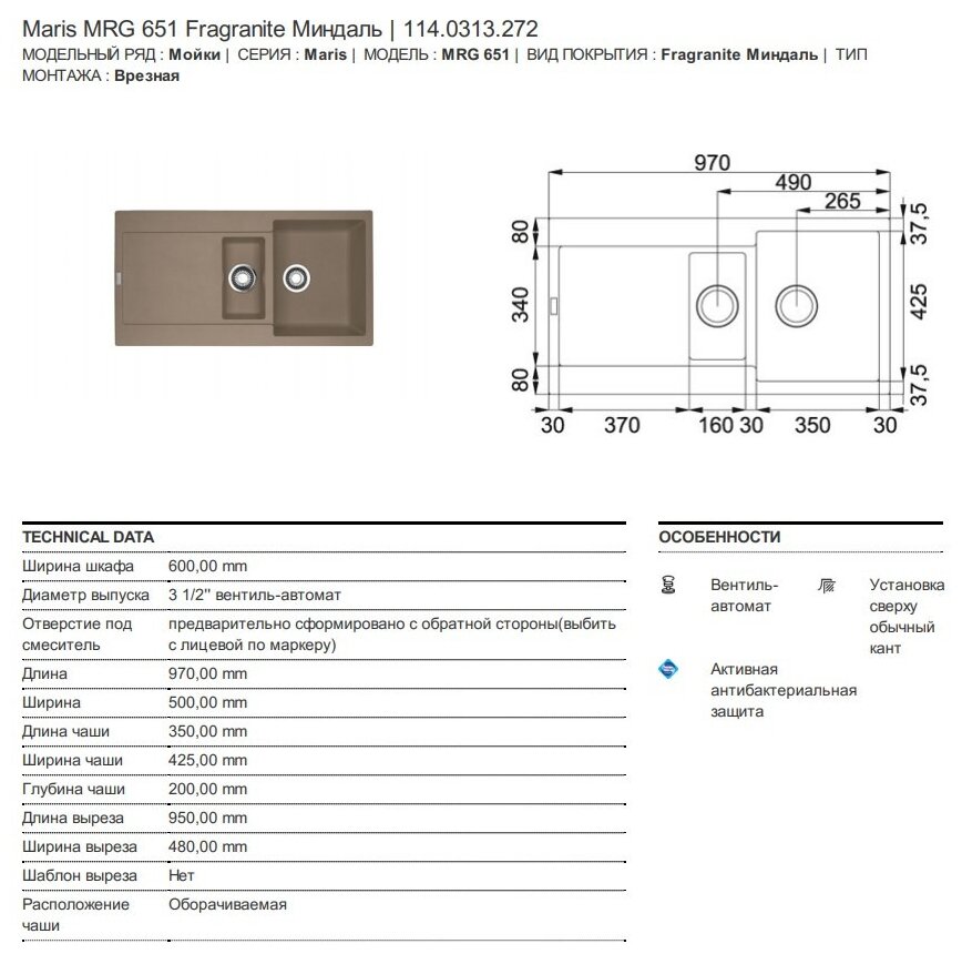 Мойка Franke MRG 651 миндаль 114.0490.331