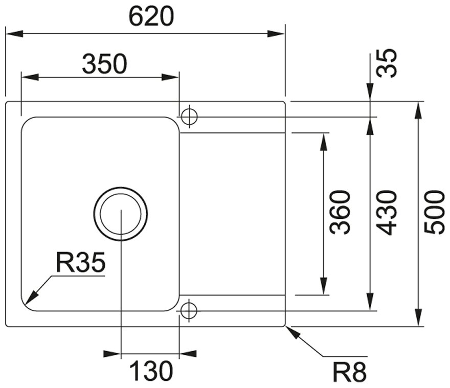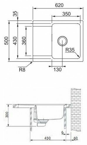 материал - Тектонайт; два отверстия для смесителя (модель оборачиваемая) - 2 x 35 мм