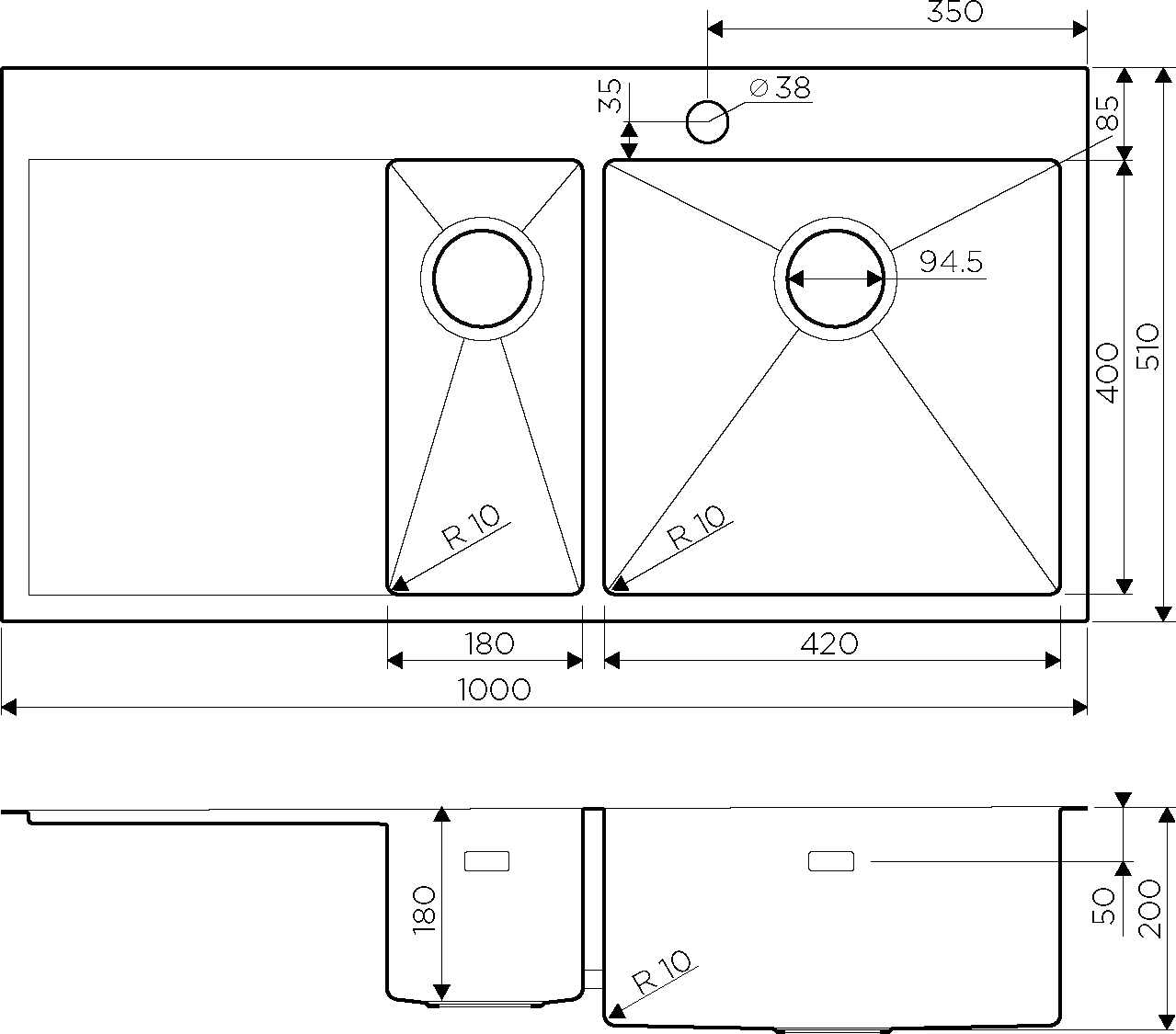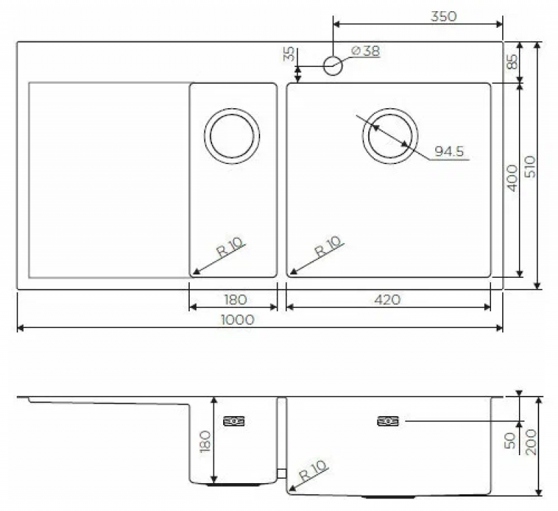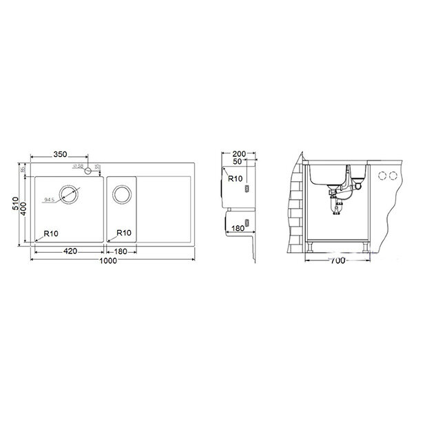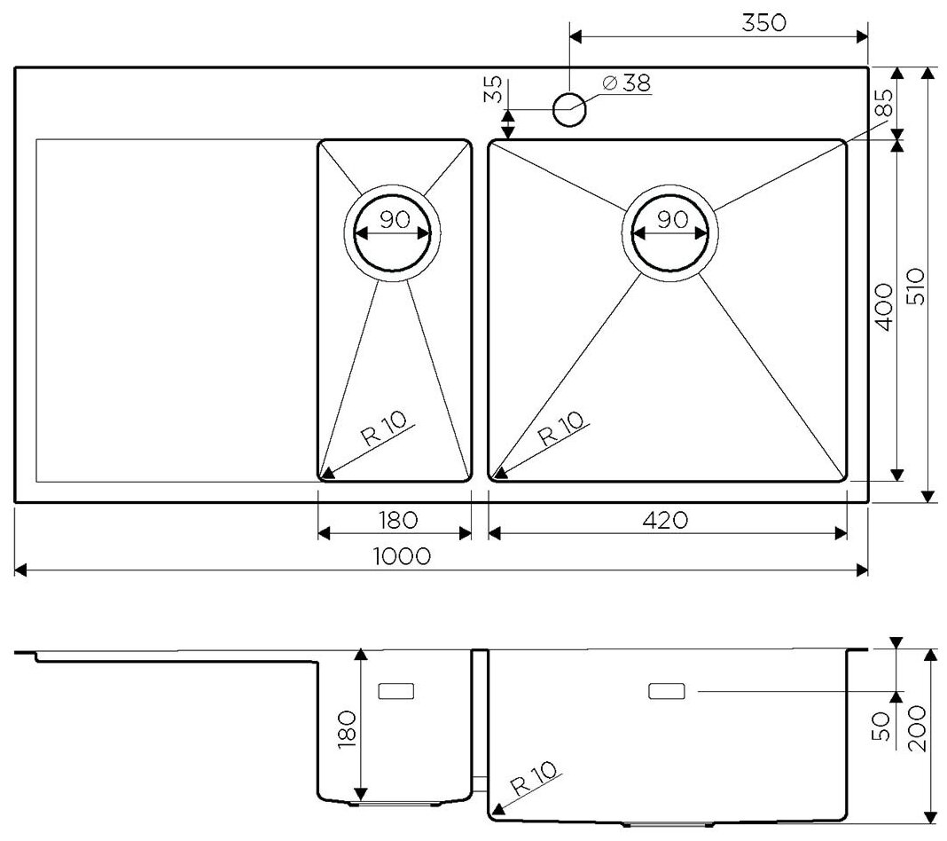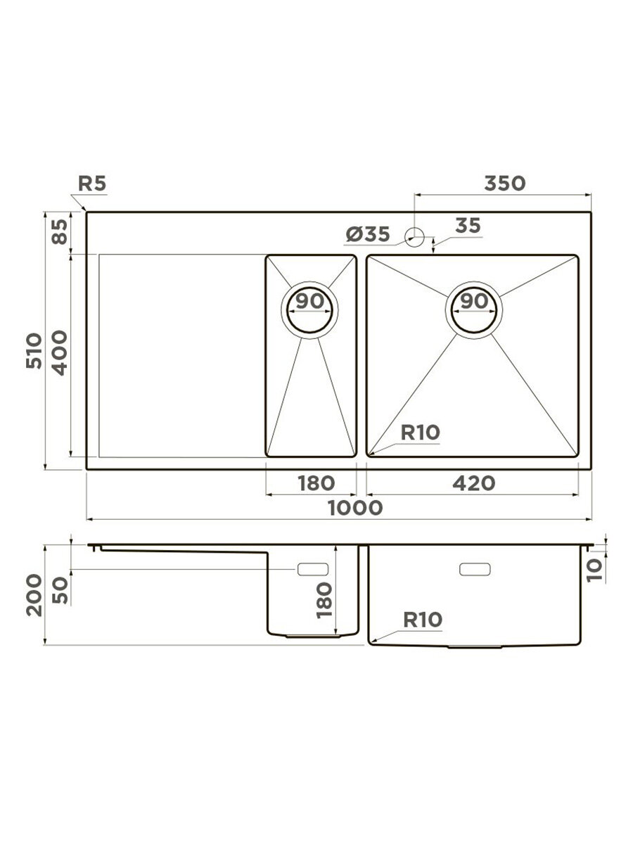 - Кухонная мойка изготовлена из высококачественной хромоникелевой нержавеющей стали SUS304. Она содержит 18% хрома и 8% никеля, что обеспечивает её максимальную защиту от коррозии;