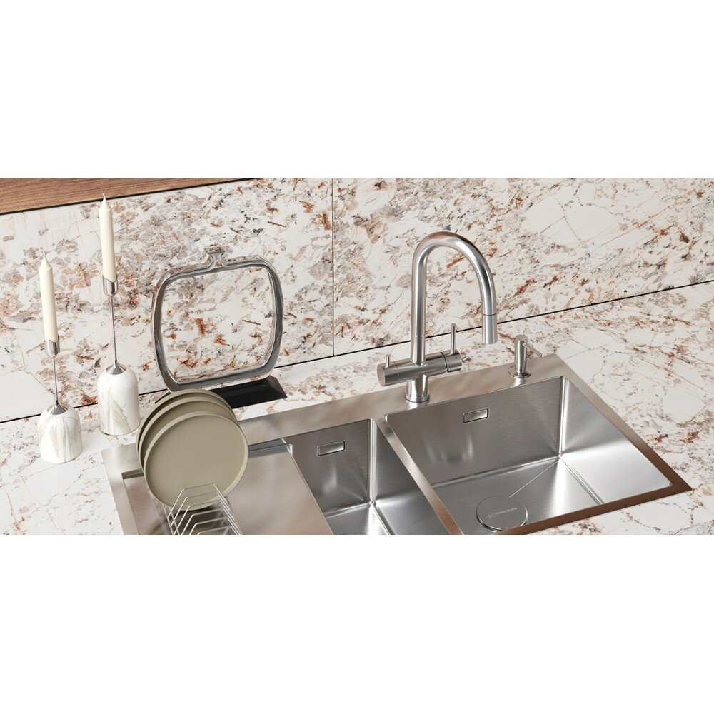 - Самый важный показатель у мойки из нержавеющей стали - толщина стали, ведь чем она тоньше, тем менее твердой, надежной и долговечной будет мойка. Для качественной мойки лучше выбирать толщину выше 0,6 мм. Мойки бренда имеют толщину от 0,7 до 1,2 мм;