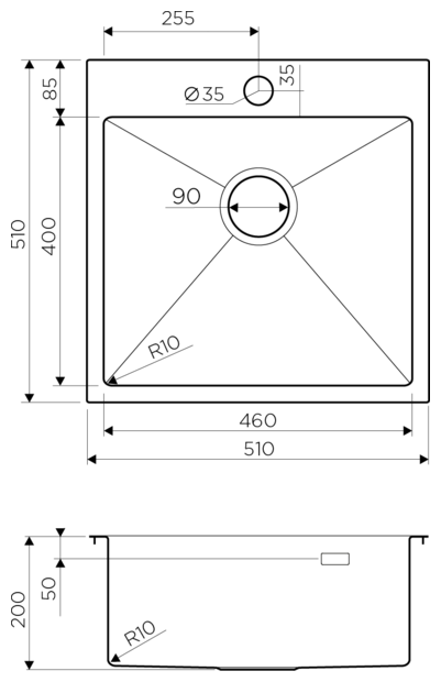 - Кухонная мойка изготовлена из высококачественной хромоникелевой нержавеющей стали SUS304. Она содержит 18% хрома и 8% никеля, что обеспечивает её максимальную защиту от коррозии;