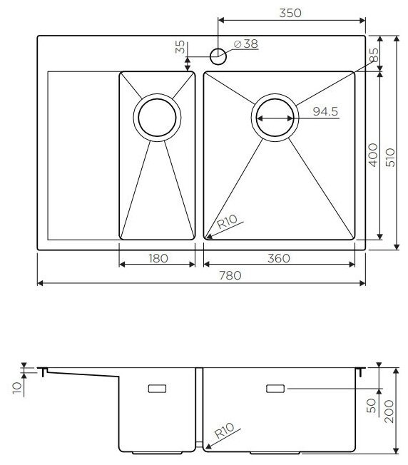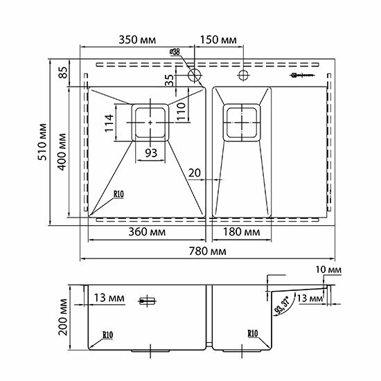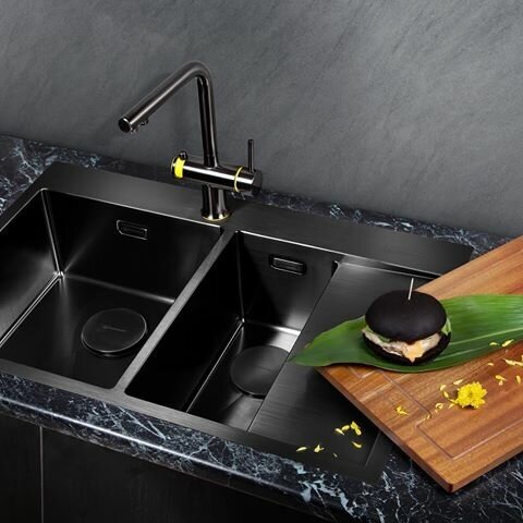дополнительная чаша, PVD покрытие, Тонкостенная, готовое отверстие под смеситель, две чаши, дополнительная чаша,отверстие под смеситель,PVD покрытие,клапан-автомат, клапан-автомат, отверстие под смеситель, с крылом, сливная арматура