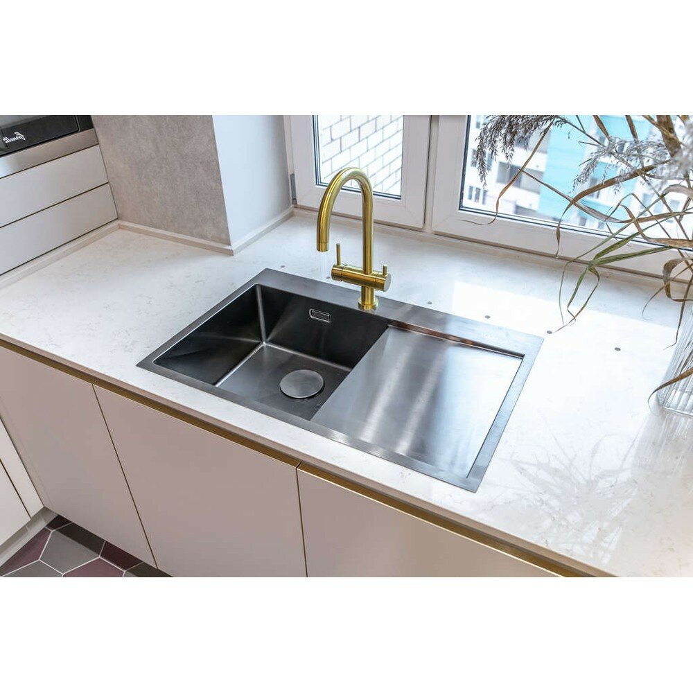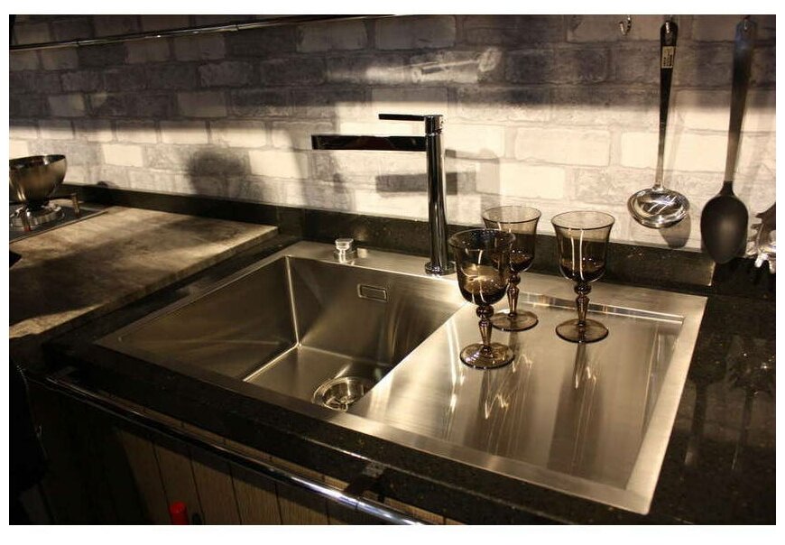 Красивый серый цвет - Leningrad Grey, отлично вписался в мою кухню, тактильно приятная поверхность искусственного гранита. Глубокая (21см) чаша и большая поверхность для посуды или столовых приборов. К мойке легко удалось подобрать смеситель в таком же цвете - Leningrad Grey.