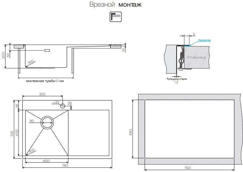 врезная, врезная на/под/вровень со столешницей, универсальная