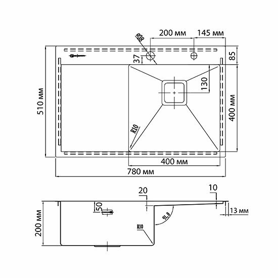 крепления, донный клапан (автоматический донный клапан приобретается отдельно), сифон, слив, перелив, гарантийный талон: толщина металла 1.2 мм