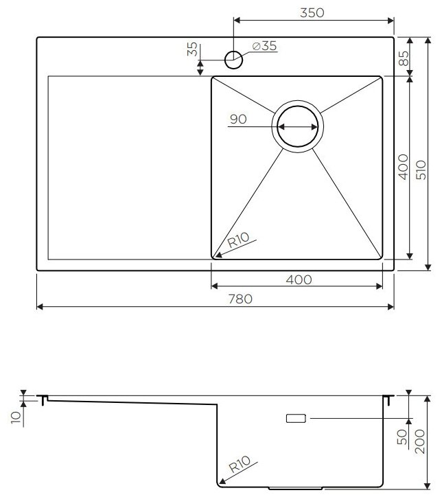 клапан-автомат, корзинчатый вентиль, отверстие под смеситель, сливная арматура