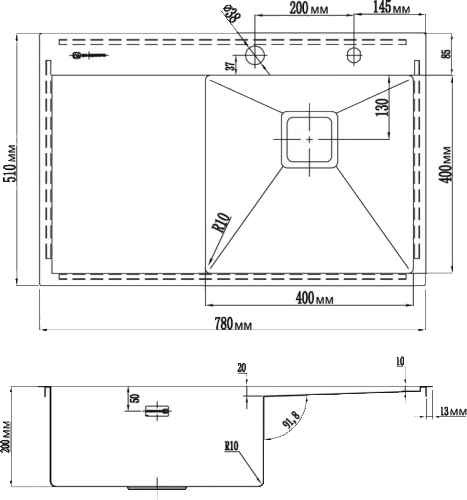 - Кухонная мойка изготовлена из высококачественной хромоникелевой нержавеющей стали SUS304. Она содержит 18% хрома и 8% никеля, что обеспечивает её максимальную защиту от коррозии;
