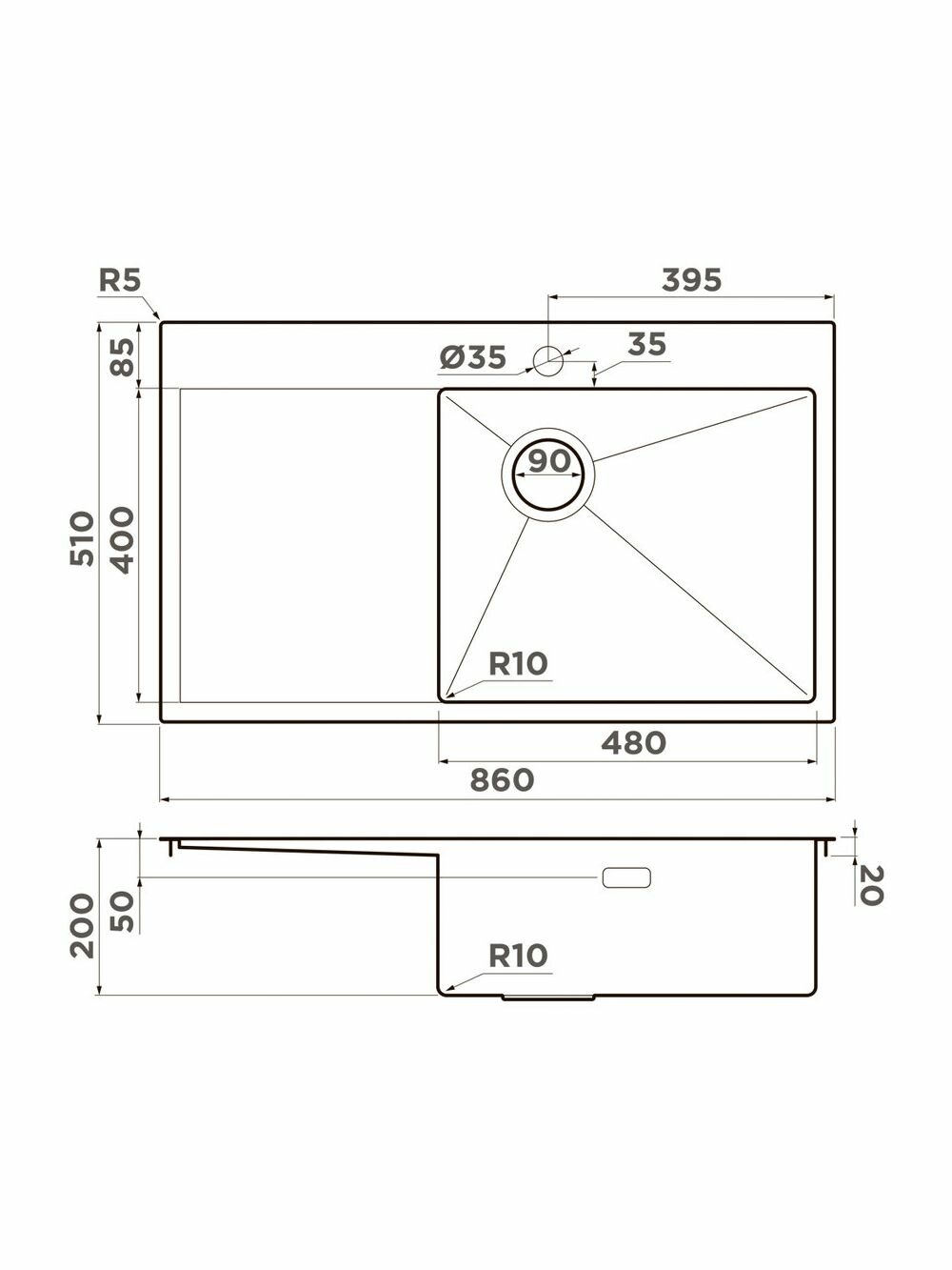 автоматический донный клапан приобретается отдельно