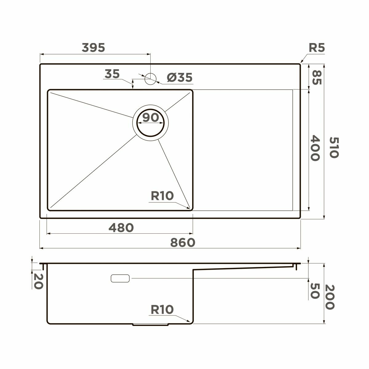 Мойка Omoikiri Akisame 86-IN-L Side 4997031