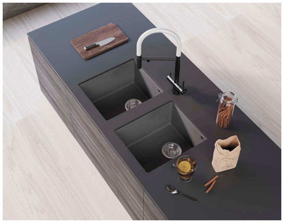 - Материал выдерживает высокие температуры до 280°С (но не стоит ставить на поверхность мойки горячие сковородки и кастрюли, т.к их температура может достигать 500°С).