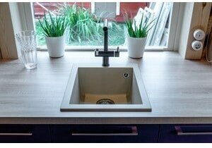 - Материал выдерживает высокие температуры до 280°С (но не стоит ставить на поверхность мойки горячие сковородки и кастрюли, т.к их температура может достигать 500°С).