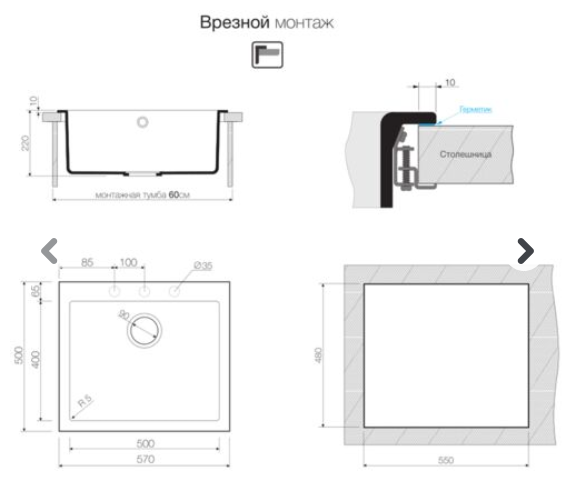 врезная, накладная, врезная на столешницу