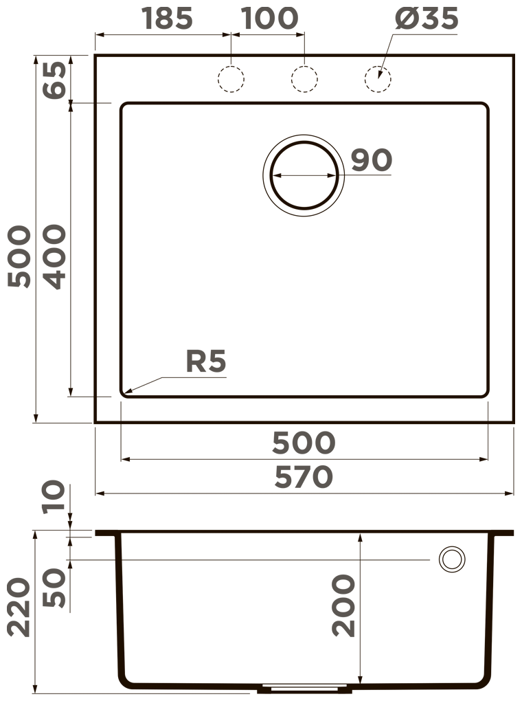 - Материал выдерживает высокие температуры до 280°С (но не стоит ставить на поверхность мойки горячие сковородки и кастрюли, т.к их температура может достигать 500°С);