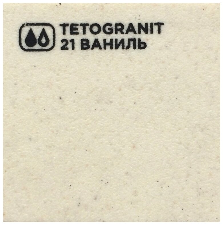 - Кухонная мойка изготовлена из матриала «Tetogranit», технология производства которого заключается в том, что частицы гранита, кварцевый песок и акриловую смолу объединяют в пресс-форме и обжигают при высокой температуре. Далее, для обеззараживания поверхности добавляют ионы серебра и волокна теторона (Tetoron), благодаря которым, на всём протяжении эксплуатации моек не происходит развитие бактерий, плесени и грибка. Также, при изготовлении моек из «Tetogranit» применяется специальный способ окрашивания частиц гранита: на их поверхность при температуре выше 700°С наносится пигмент, который за счет высокотемпературного нанесения проникает во внутренние структуры камня;