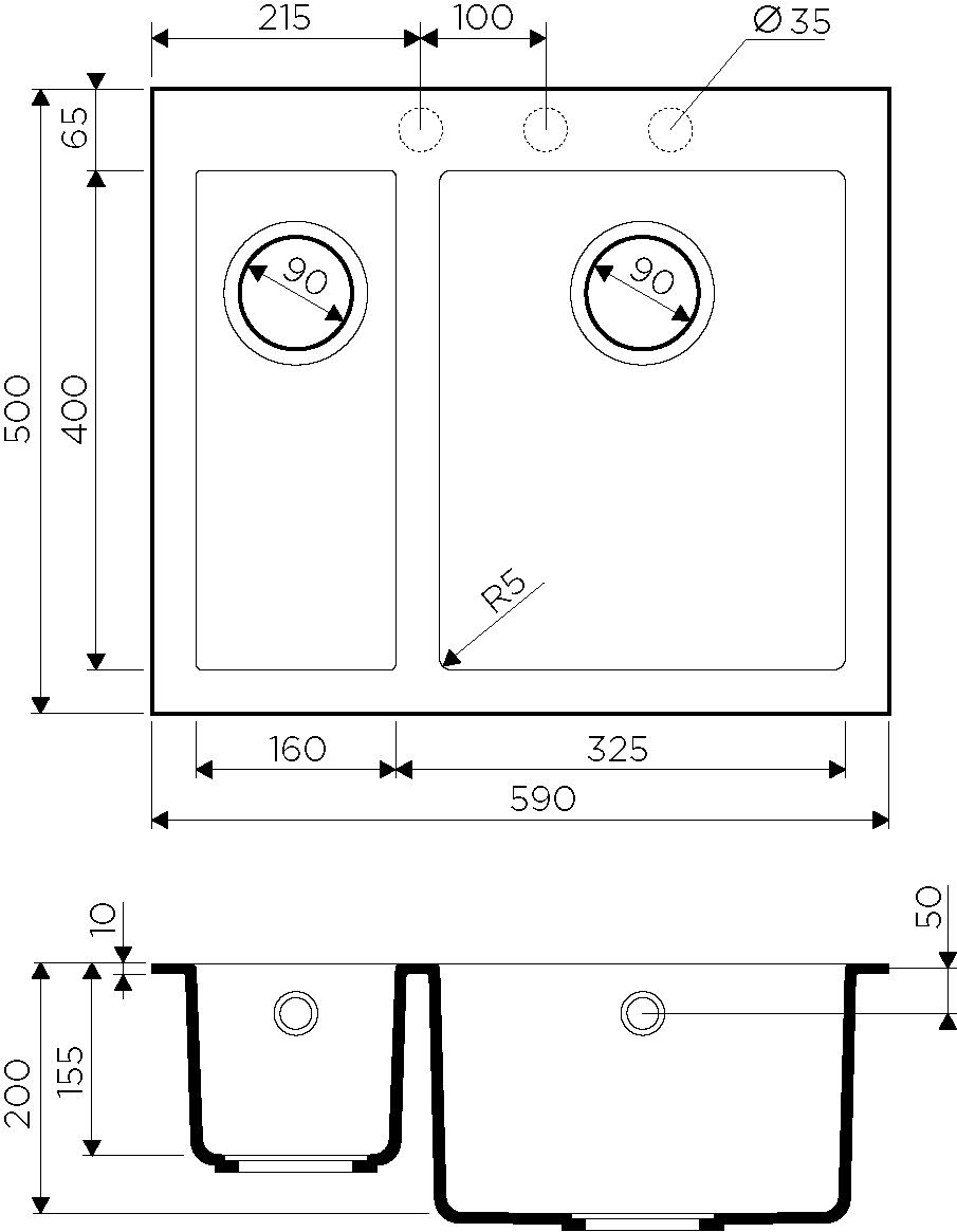 дополнительная чаша, С сифоном, две чаши, дополнительная чаша,отверстие под смеситель,сливная арматура,клапан-автомат, клапан-автомат, отверстие под смеситель, сливная арматура