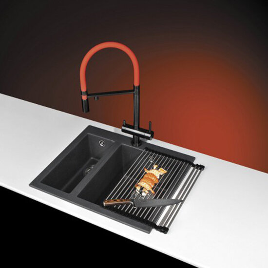 - Материал выдерживает высокие температуры до 280°С (но не стоит ставить на поверхность мойки горячие сковородки и кастрюли, т.к их температура может достигать 500°С).
