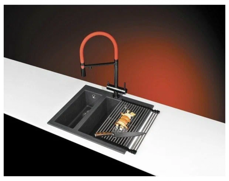 - Материал выдерживает высокие температуры до 280°С (но не стоит ставить на поверхность мойки горячие сковородки и кастрюли, т.к их температура может достигать 500°С).