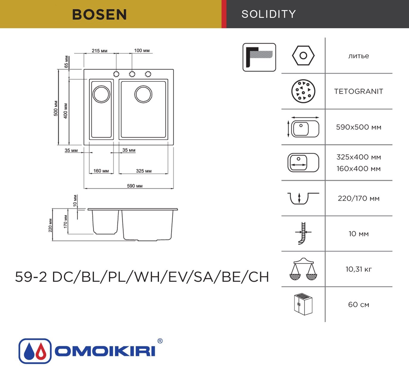 Скачать документы для Мойка Omoikiri Bosen 59-2-PL платина (4993224)