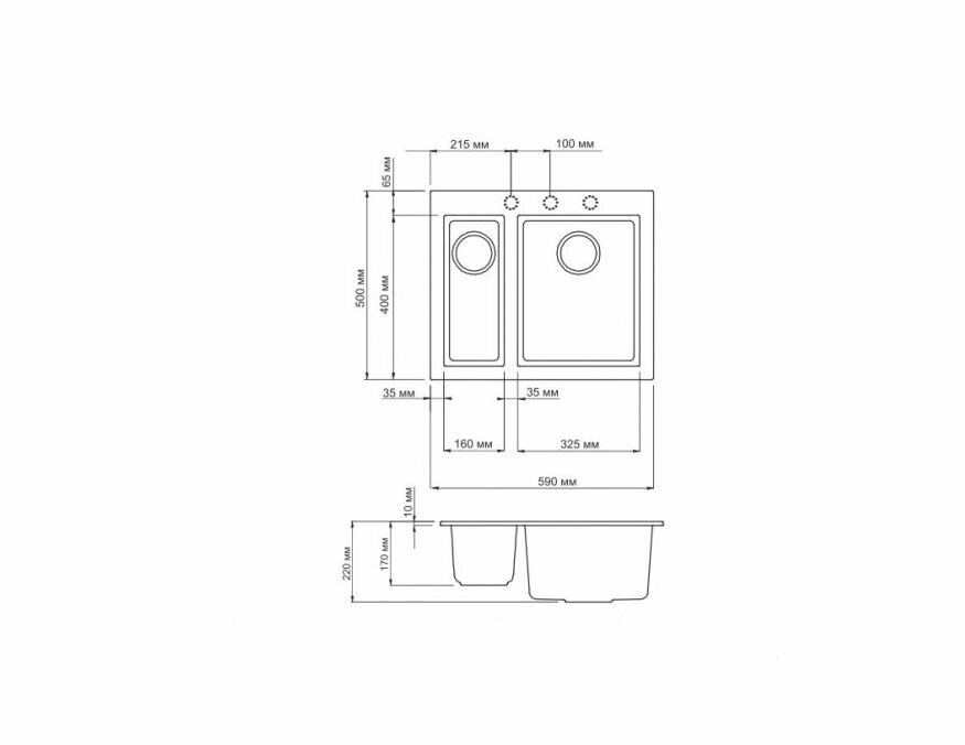 дополнительная чаша, С сифоном, две чаши, дополнительная чаша,отверстие под смеситель,сливная арматура,клапан-автомат, клапан-автомат, отверстие под смеситель, сливная арматура