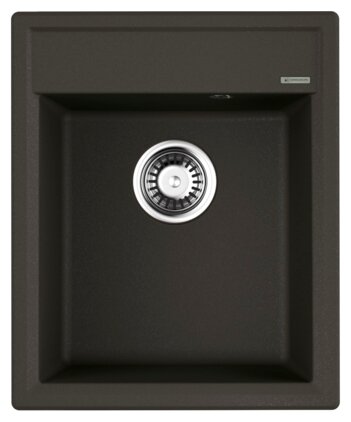 - Кухонная мойка изготовлена из матриала «Artgranit», технология производства которого заключается в том, что частицы кварца, гранита и прочного связующего полимера нового поколения, свойства которого похожи на акриловую смолу, соединяют вместе и помещают в форму. После застывания получается готовая мойка;