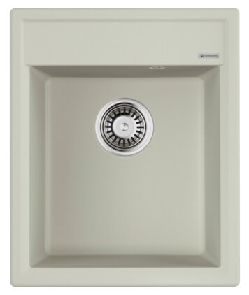 - Кухонная мойка изготовлена из матриала «Artgranit», технология производства которого заключается в том, что частицы кварца, гранита и прочного связующего полимера нового поколения, свойства которого похожи на акриловую смолу, соединяют вместе и помещают в форму. После застывания получается готовая мойка;