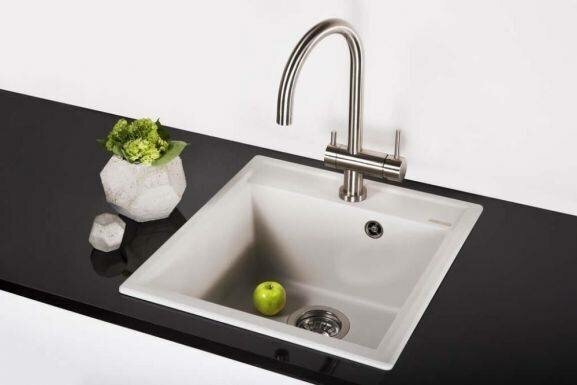 - Помимо гранита, в состав материала входит молотый кварц мельчайших размеров, которому характерны непревзойденная прочность и устойчивость к природным и химическим воздействиям. Свойства данного компонента вместе с долговечностью гранита обеспечивают мойке прочность и делают её устойчивой к любым механическим повреждениям: деформациям, сколам;