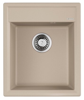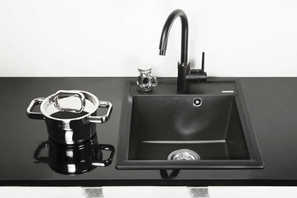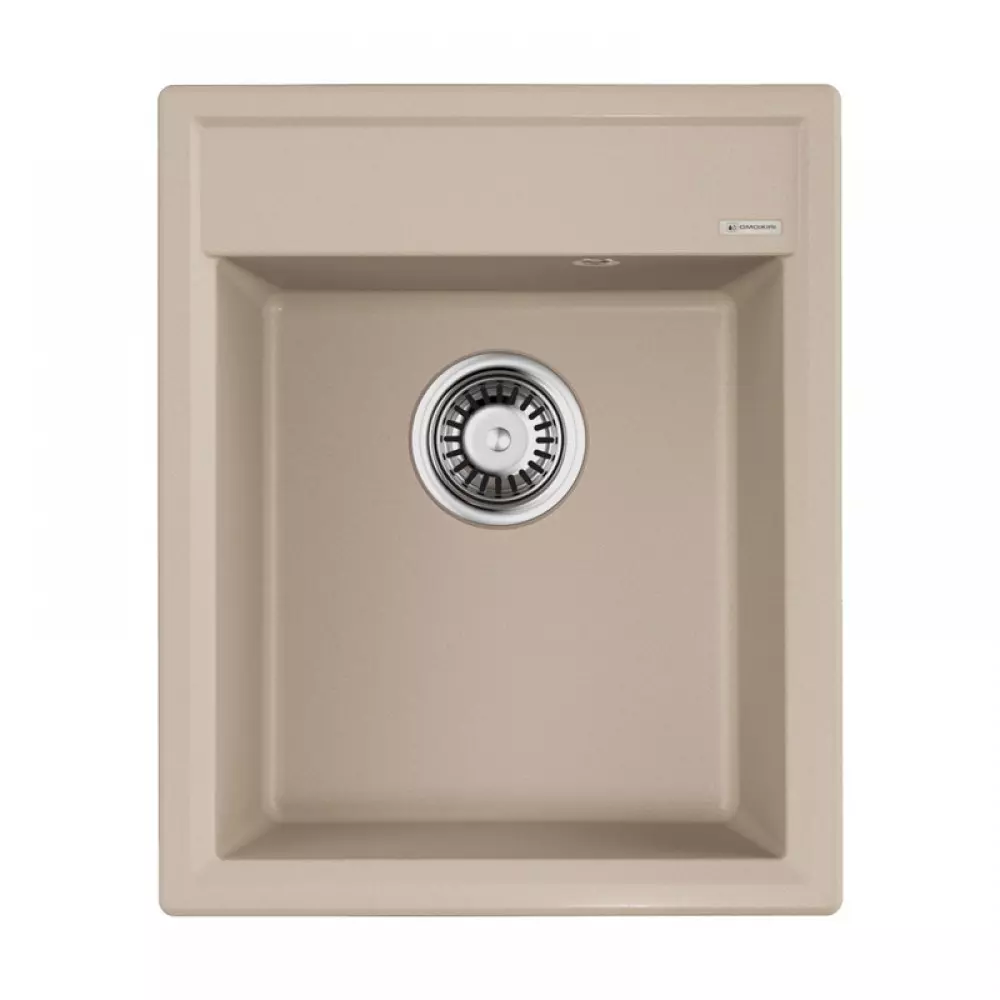 - Кухонная мойка изготовлена из матриала «Artgranit», технология производства которого заключается в том, что частицы кварца, гранита и прочного связующего полимера нового поколения, свойства которого похожи на акриловую смолу, соединяют вместе и помещают в форму. После застывания получается готовая мойка;