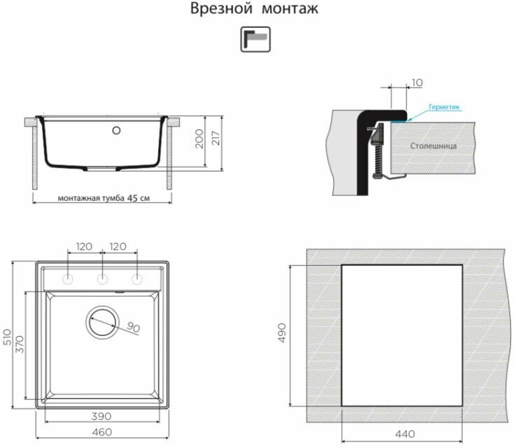 Скачать документы для Мойка Omoikiri Daisen 46-BL Artgranit/Черный NEW 4993614