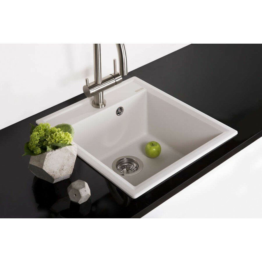 - Помимо гранита, в состав материала входит молотый кварц мельчайших размеров, которому характерны непревзойденная прочность и устойчивость к природным и химическим воздействиям. Свойства данного компонента вместе с долговечностью гранита обеспечивают мойке прочность и делают её устойчивой к любым механическим повреждениям: деформациям, сколам;