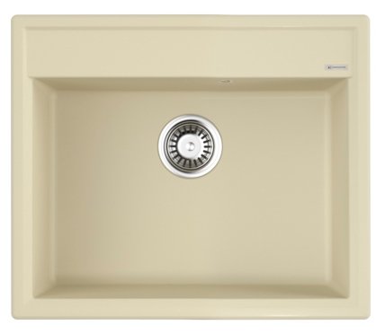 - Кухонная мойка изготовлена из матриала «Artgranit», технология производства которого заключается в том, что частицы кварца, гранита и прочного связующего полимера нового поколения, свойства которого похожи на акриловую смолу, соединяют вместе и помещают в форму. После застывания получается готовая мойка;