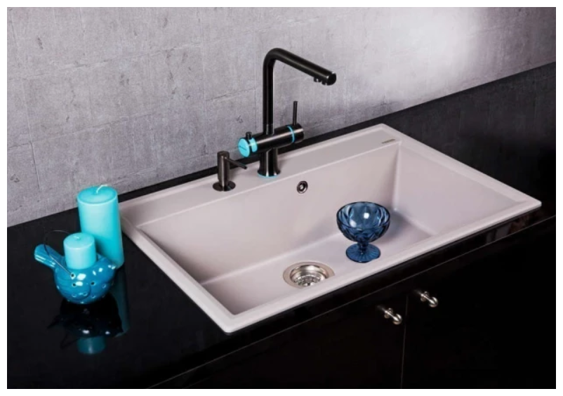 - Помимо гранита, в состав материала входит молотый кварц мельчайших размеров, которому характерны непревзойденная прочность и устойчивость к природным и химическим воздействиям. Свойства данного компонента вместе с долговечностью гранита обеспечивают мойке прочность и делают её устойчивой к любым механическим повреждениям: деформациям, сколам;