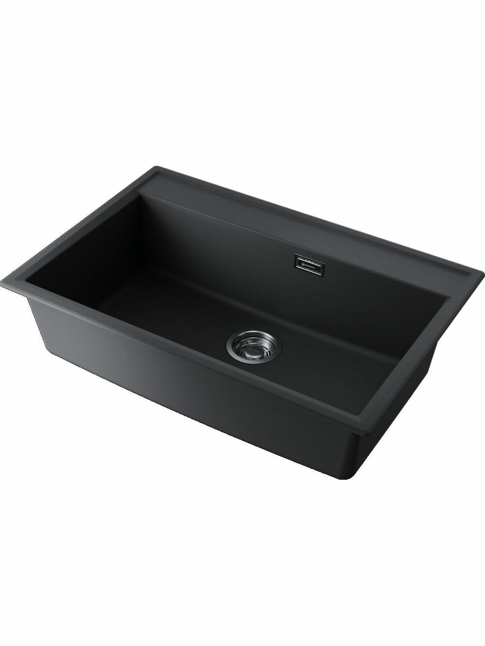 - Кухонная мойка изготовлена из матриала «Artgranit», технология производства которого заключается в том, что частицы кварца, гранита и прочного связующего полимера нового поколения, свойства которого похожи на акриловую смолу, соединяют вместе и помещают в форму. После застывания получается готовая мойка;