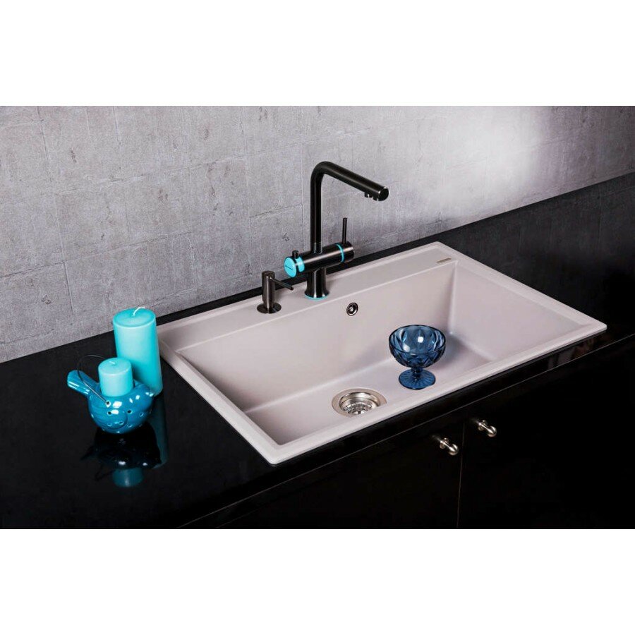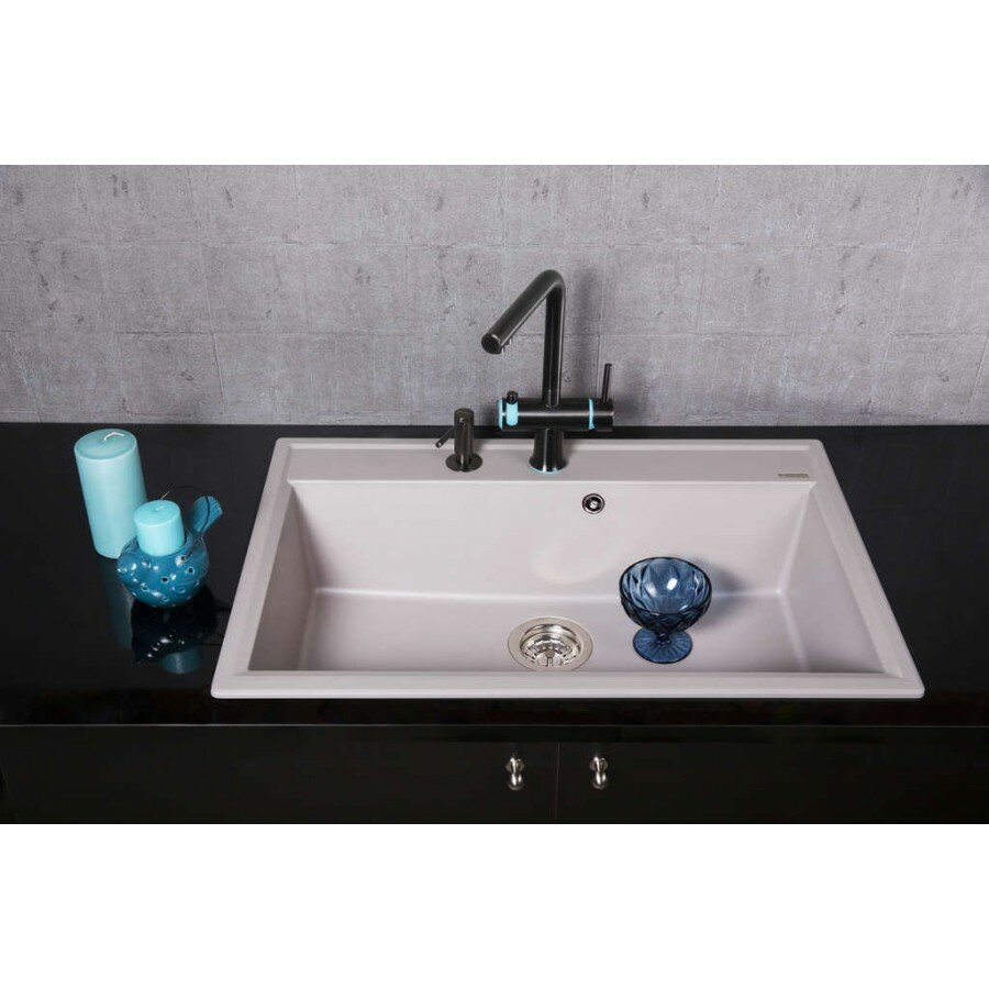 - Помимо гранита, в состав материала входит молотый кварц мельчайших размеров, которому характерны непревзойденная прочность и устойчивость к природным и химическим воздействиям. Свойства данного компонента вместе с долговечностью гранита обеспечивают мойке прочность и делают её устойчивой к любым механическим повреждениям: деформациям, сколам;