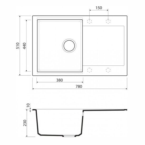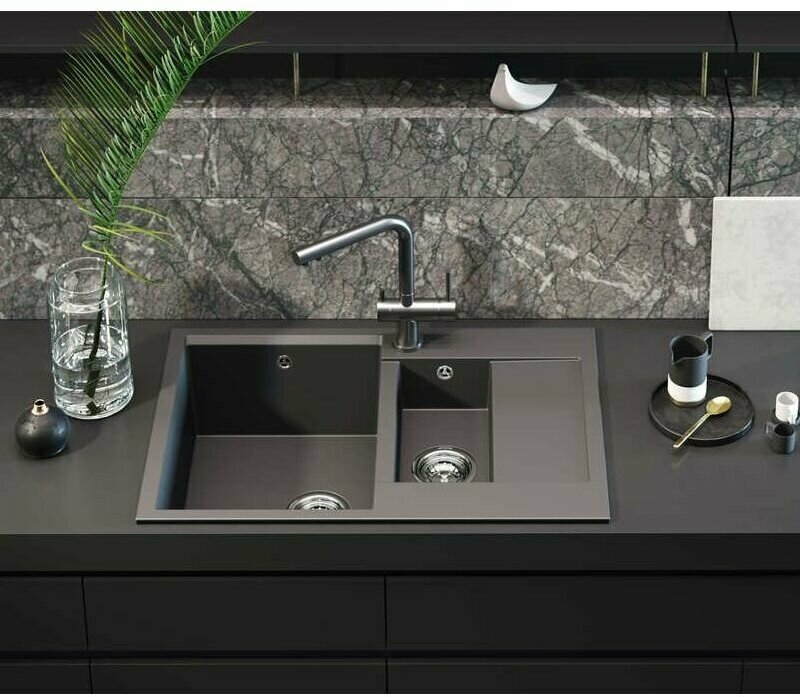 - Помимо гранита, в состав материала входит молотый кварц мельчайших размеров, которому характерны непревзойденная прочность и устойчивость к природным и химическим воздействиям. Свойства данного компонента вместе с долговечностью гранита обеспечивают мойке прочность и делают её устойчивой к любым механическим повреждениям: деформациям, сколам;