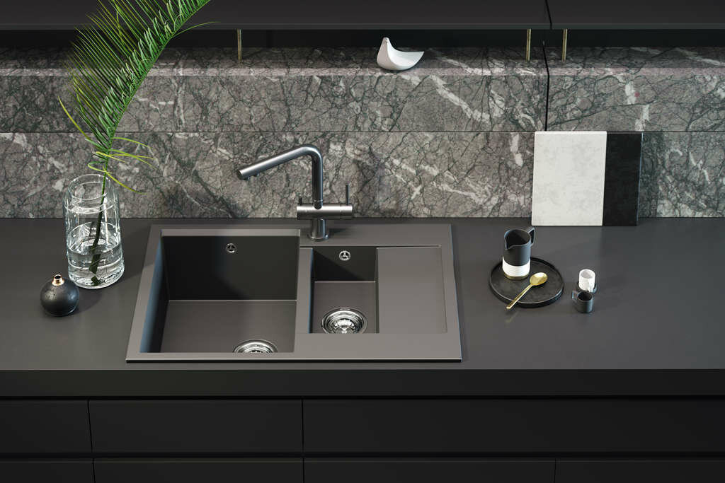 - Кухонная мойка изготовлена из матриала «Tetogranit», технология производства которого заключается в том, что частицы гранита, кварцевый песок и акриловую смолу объединяют в пресс-форме и обжигают при высокой температуре. Далее, для обеззараживания поверхности добавляют ионы серебра и волокна теторона (Tetoron), благодаря которым, на всём протяжении эксплуатации моек не происходит развитие бактерий, плесени и грибка. Также, при изготовлении моек из «Tetogranit» применяется специальный способ окрашивания частиц гранита: на их поверхность при температуре выше 700°С наносится пигмент, который за счет высокотемпературного нанесения проникает во внутренние структуры камня;