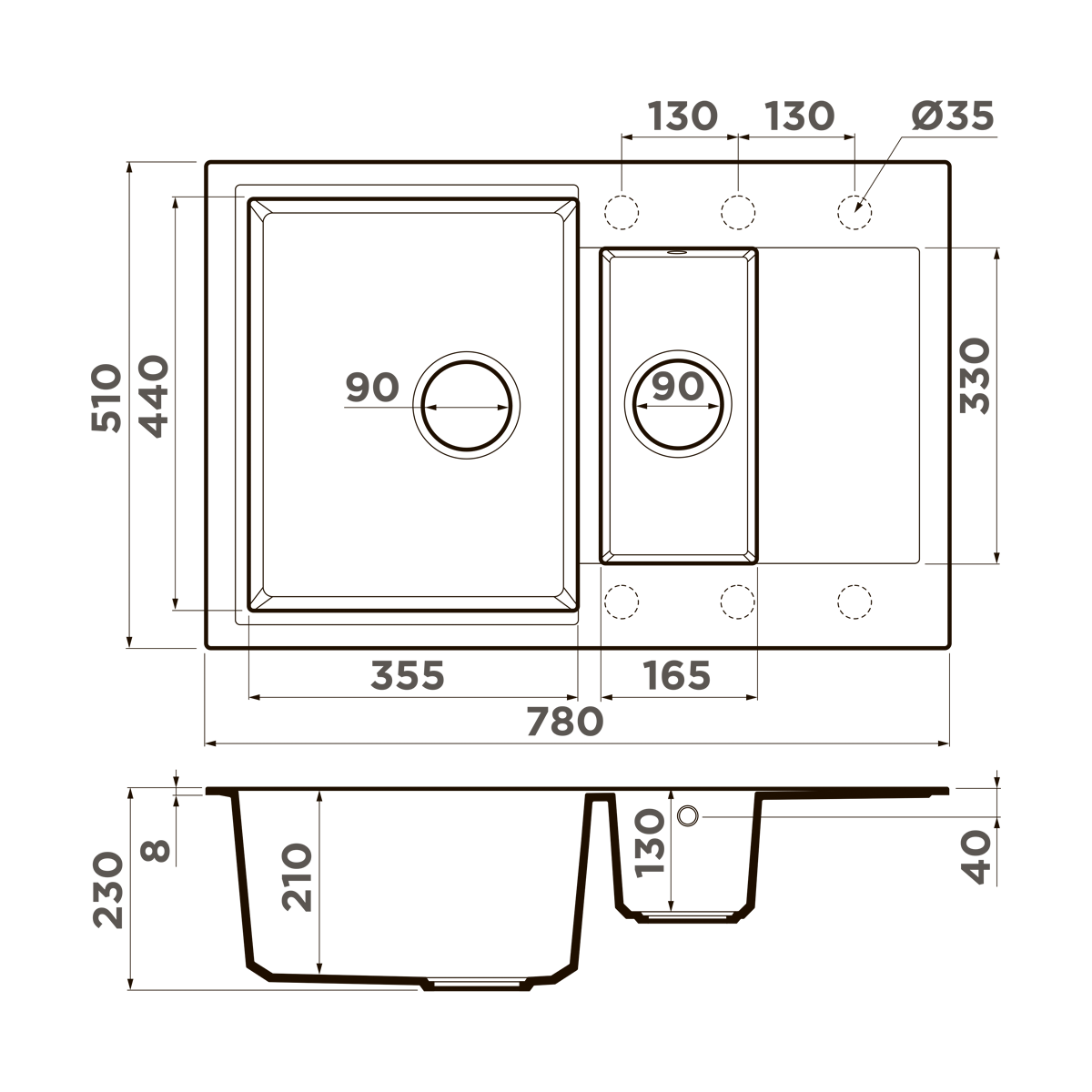 - За счет окрашивания каждой частицы гранитного материала при помощи специальной технологии, первоначальный цвет мойки гарантировано сохраняется в течение всего срока службы;