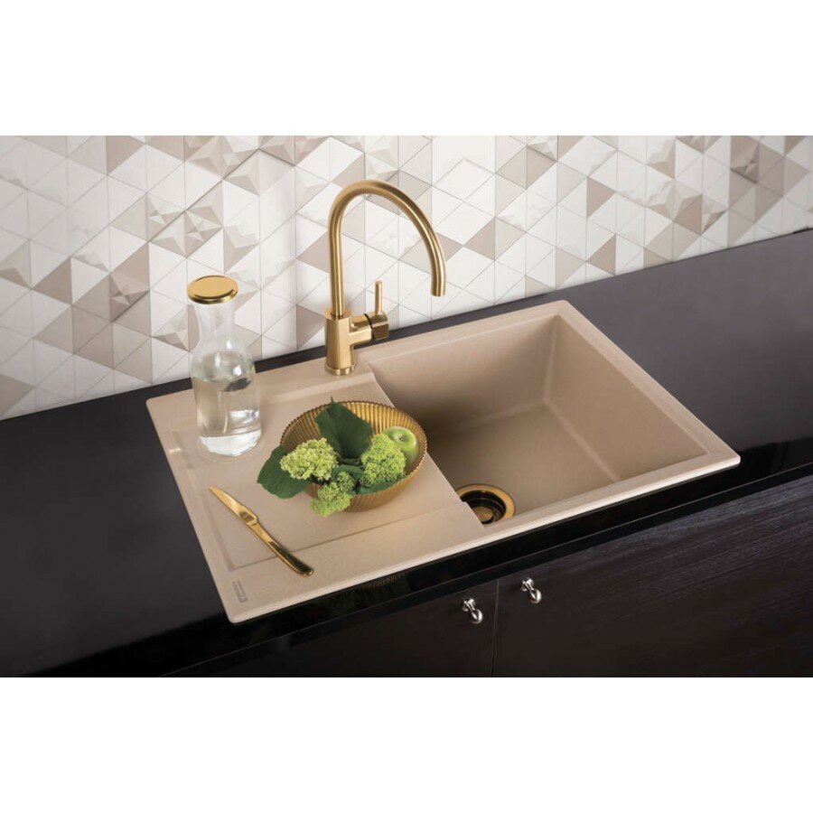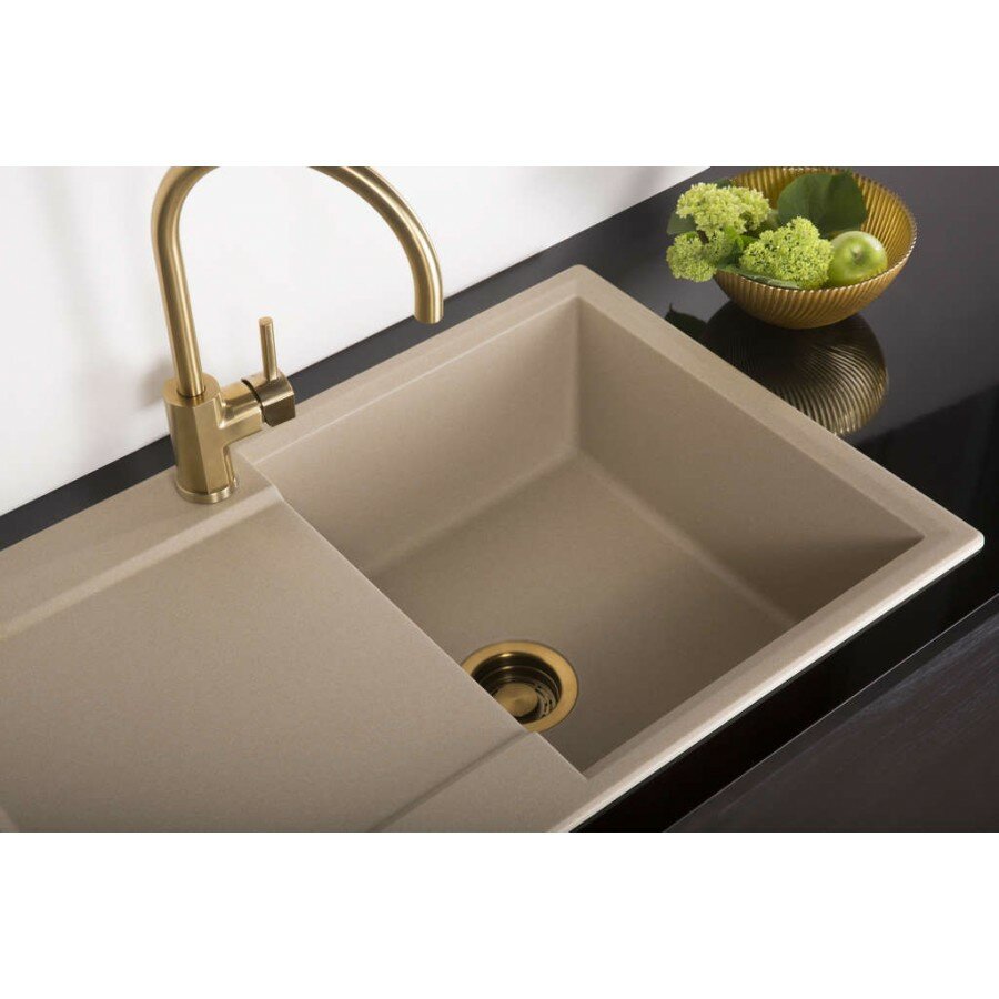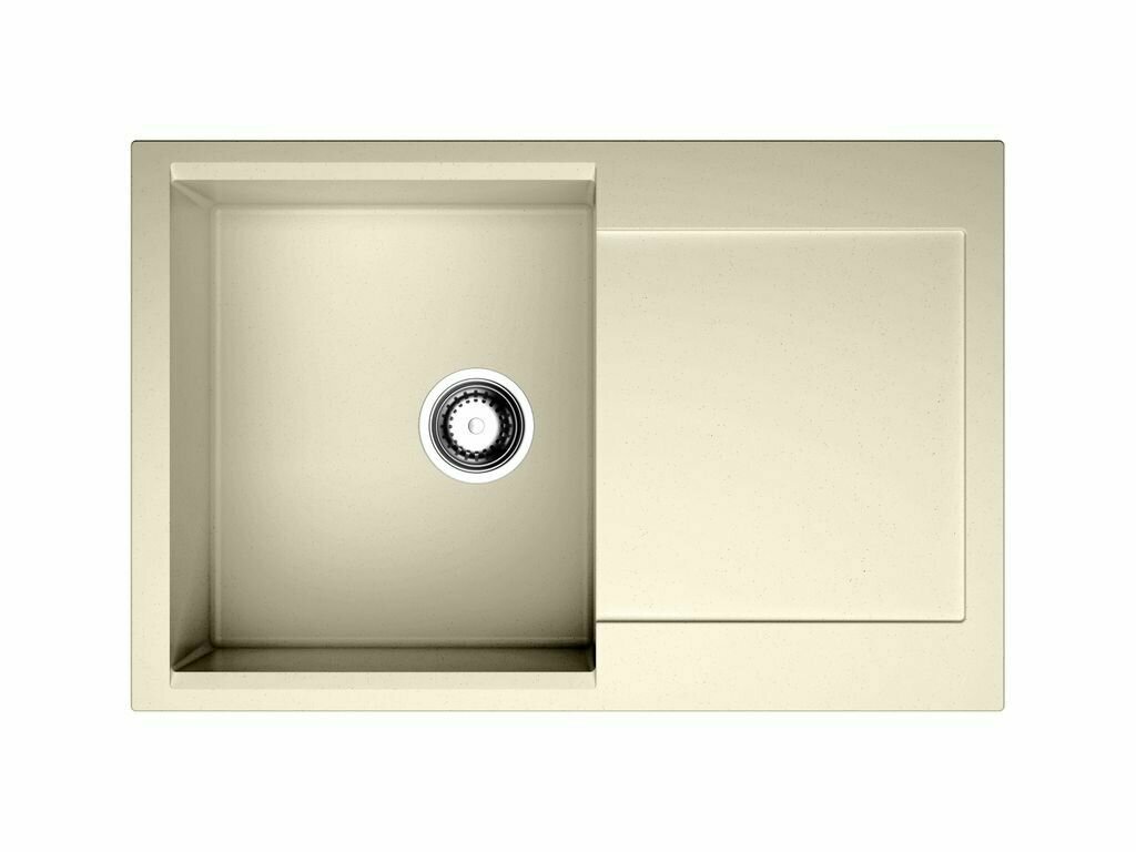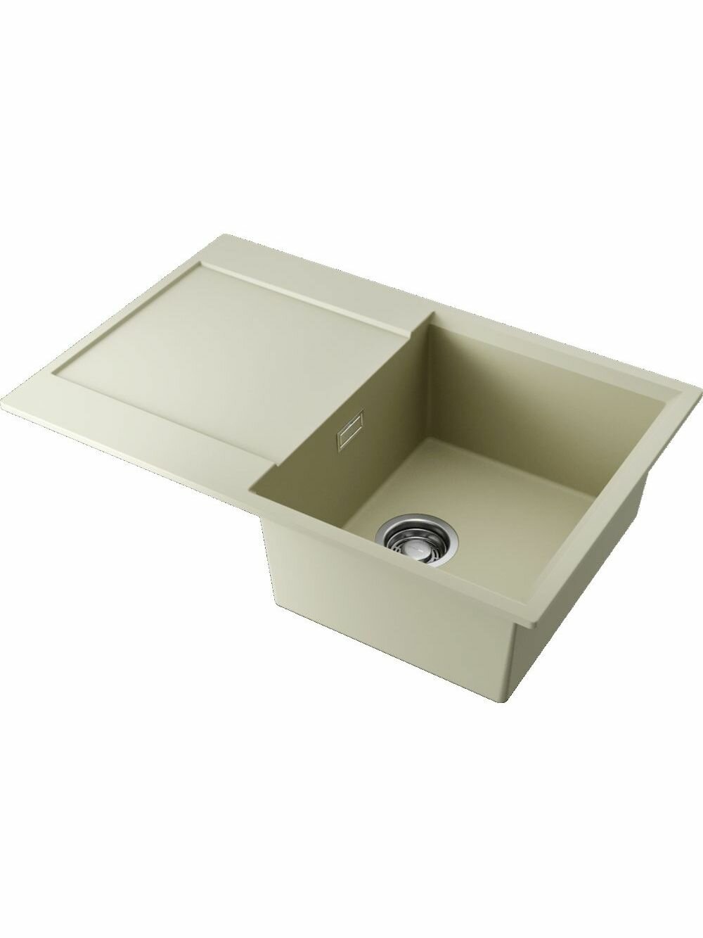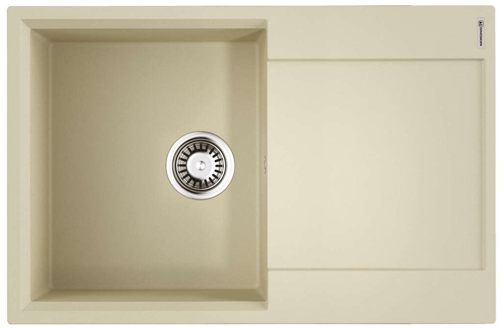 - Кухонная мойка изготовлена из матриала «Artgranit», технология производства которого заключается в том, что частицы кварца, гранита и прочного связующего полимера нового поколения, свойства которого похожи на акриловую смолу, соединяют вместе и помещают в форму. После застывания получается готовая мойка;