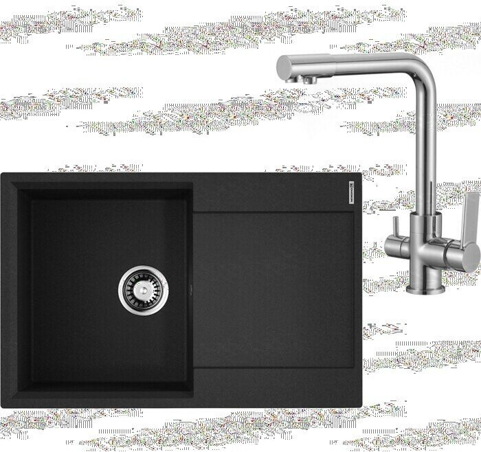 - Кухонная мойка изготовлена из матриала «Artgranit», технология производства которого заключается в том, что частицы кварца, гранита и прочного связующего полимера нового поколения, свойства которого похожи на акриловую смолу, соединяют вместе и помещают в форму. После застывания получается готовая мойка;