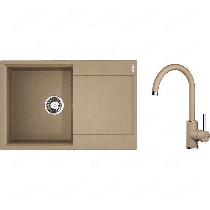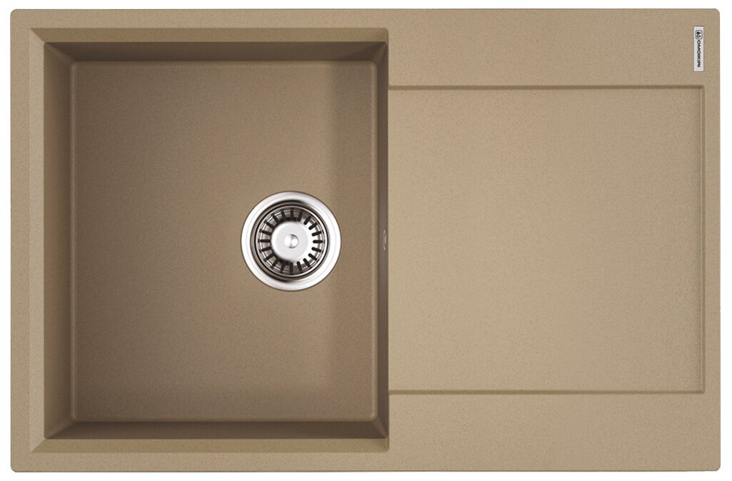 - Кухонная мойка изготовлена из матриала «Artgranit», технология производства которого заключается в том, что частицы кварца, гранита и прочного связующего полимера нового поколения, свойства которого похожи на акриловую смолу, соединяют вместе и помещают в форму. После застывания получается готовая мойка;