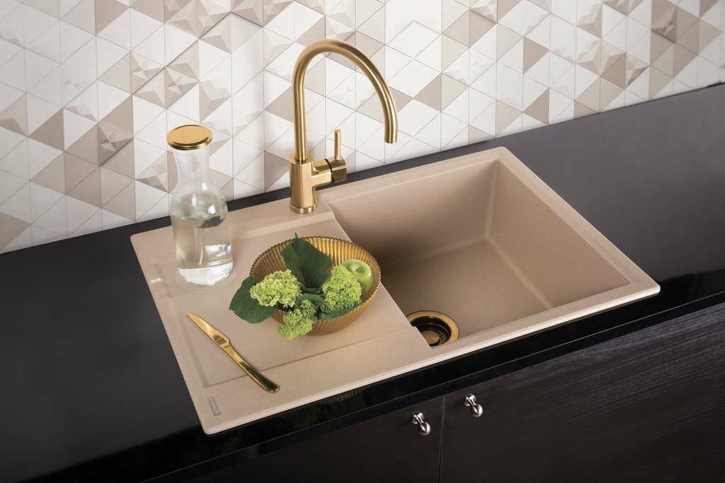 - Помимо гранита, в состав материала входит молотый кварц мельчайших размеров, которому характерны непревзойденная прочность и устойчивость к природным и химическим воздействиям. Свойства данного компонента вместе с долговечностью гранита обеспечивают мойке прочность и делают её устойчивой к любым механическим повреждениям: деформациям, сколам;