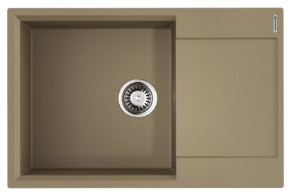 - Кухонная мойка изготовлена из матриала «Artgranit», технология производства которого заключается в том, что частицы кварца, гранита и прочного связующего полимера нового поколения, свойства которого похожи на акриловую смолу, соединяют вместе и помещают в форму. После застывания получается готовая мойка;